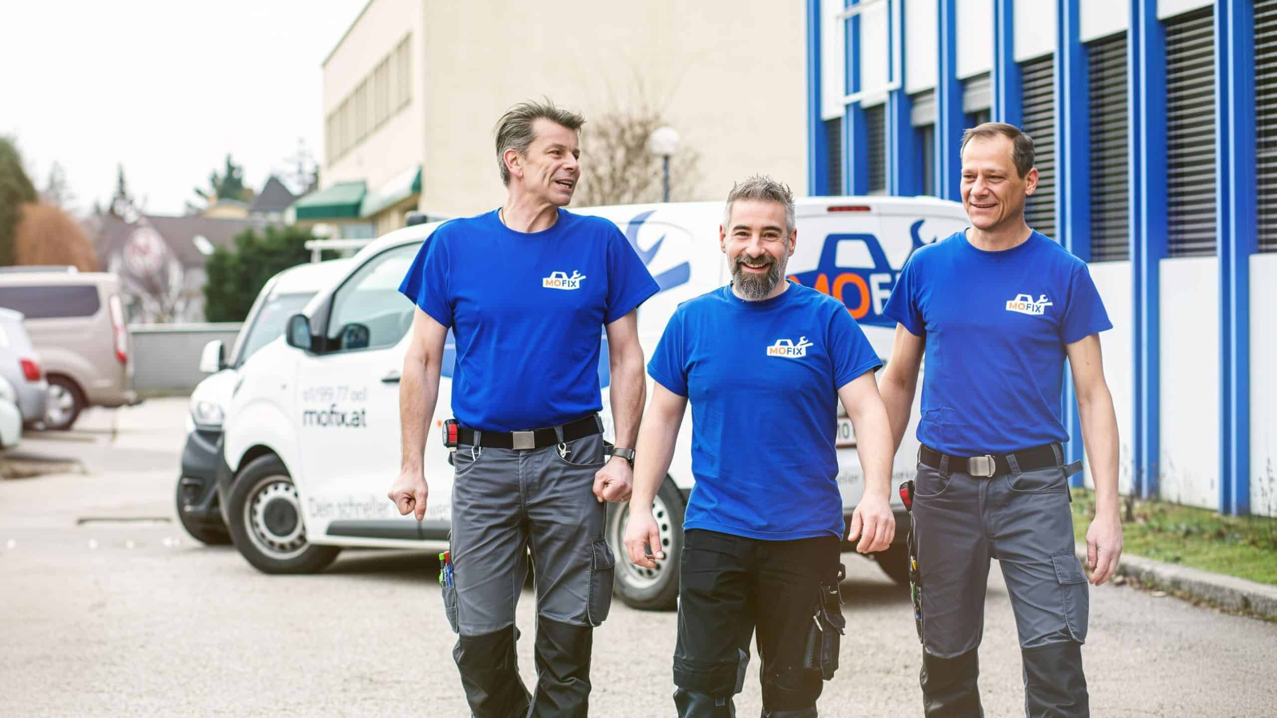 Handwerker mit Auto und Werkzeug frühmorgens, mittags-, nachmittags – flexibel. Fix – einfach MoFix!